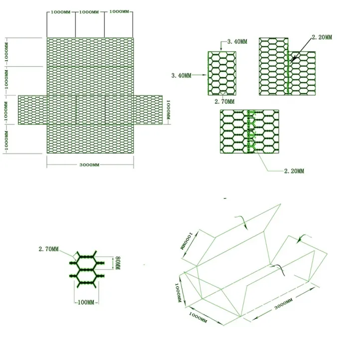There are three types of gabion boxes for sale, including hexagonal gabin boxes, galvanised gabin boxes and hexagonal wire mesh rolls. Hexagonal gabion box is a lattice structure with hexagonal mesh design, which is a mesh cage braided by high-strength metal wire, which can be filled with stones or other filling materials for various engineering construction and ecological protection projects. Galvanized gabion box is a mesh container made of galvanized steel wire, which is usually used in a variety of engineering structures, especially in the need of ecological friendliness and structural stability. It can not only provide effective structural support, but also harmoniously integrate with the natural environment, and is a multi-functional engineering material. The hexagonal wire mesh rolls is a kind of engineering material woven with twisted hexagonal mesh, usually in the form of a roll, which is easy to transport and construction. With its unique structure and excellent properties, this material is widely used in civil engineering, hydraulic engineering and environmental restoration projects.